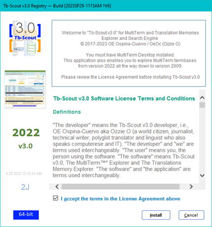 In the next step, the first time that you open the application you should be able to see this or a similar screen (where just content varies, depending on the MultiTerm version selected and license period), which is the registration form.