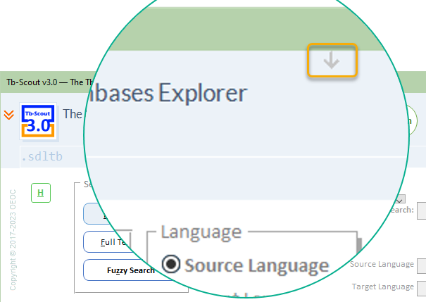 In a normal Microsoft Windows 10 or Windows 11 environment you may have several windows open at the same time. When you need to temporarily "hide" Tb-Scout v3.3, click the arrow icon. To reinstate the application, go to the taskbar and double-click the application icon.