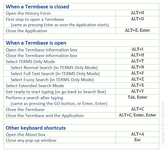 - Do you want to quickly close a Termbase and then the application? Press in quick succession Alt+C, Enter, Enter.
